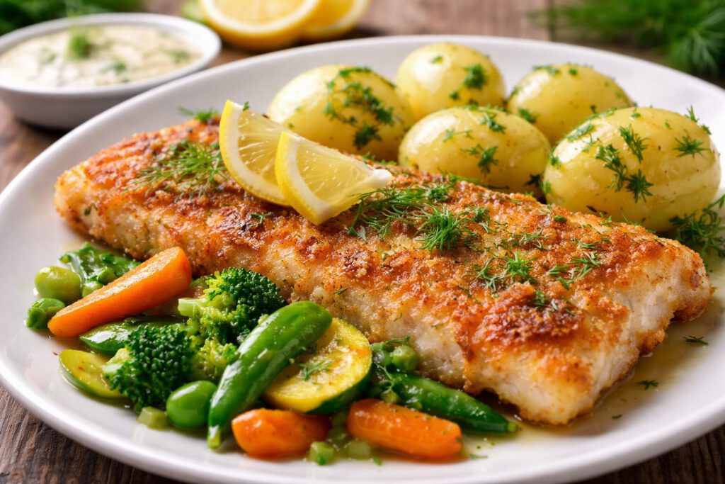 🍽 Hauptspeise Scholle paniert auf Buttergemüse Mit Pellkartoffeln