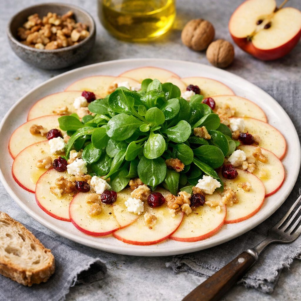 Apfel-Carpaccio mit Feldsalat und Walnussdressing?