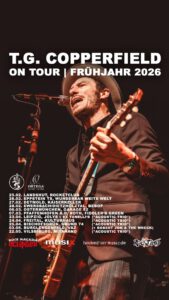 Sänger, Produzent, Songwriter und Gitarrist TG Copperfield arbeitet immer an der Magie des nächsten Songs. Angefangen als treibende Kraft der Southern-Bluesrocker 3 Dayz Whizkey fand er bald seine ganz eigene Stimme in Blues, Rock und Americana. Ein Geschichtenerzähler mit einem bemerkenswerten Gespür für Melodien und dem wahren Herzen eines Rock and Rollers.